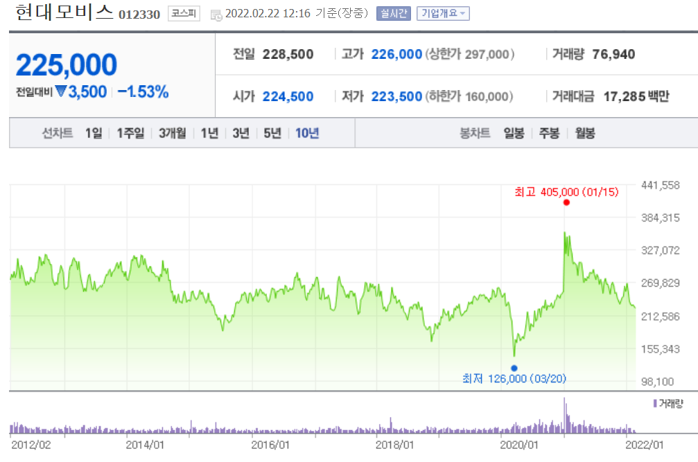 그 중, 좀 더 부품과 모듈사업에 집중되어 있는 현대모비스를 선택했다.