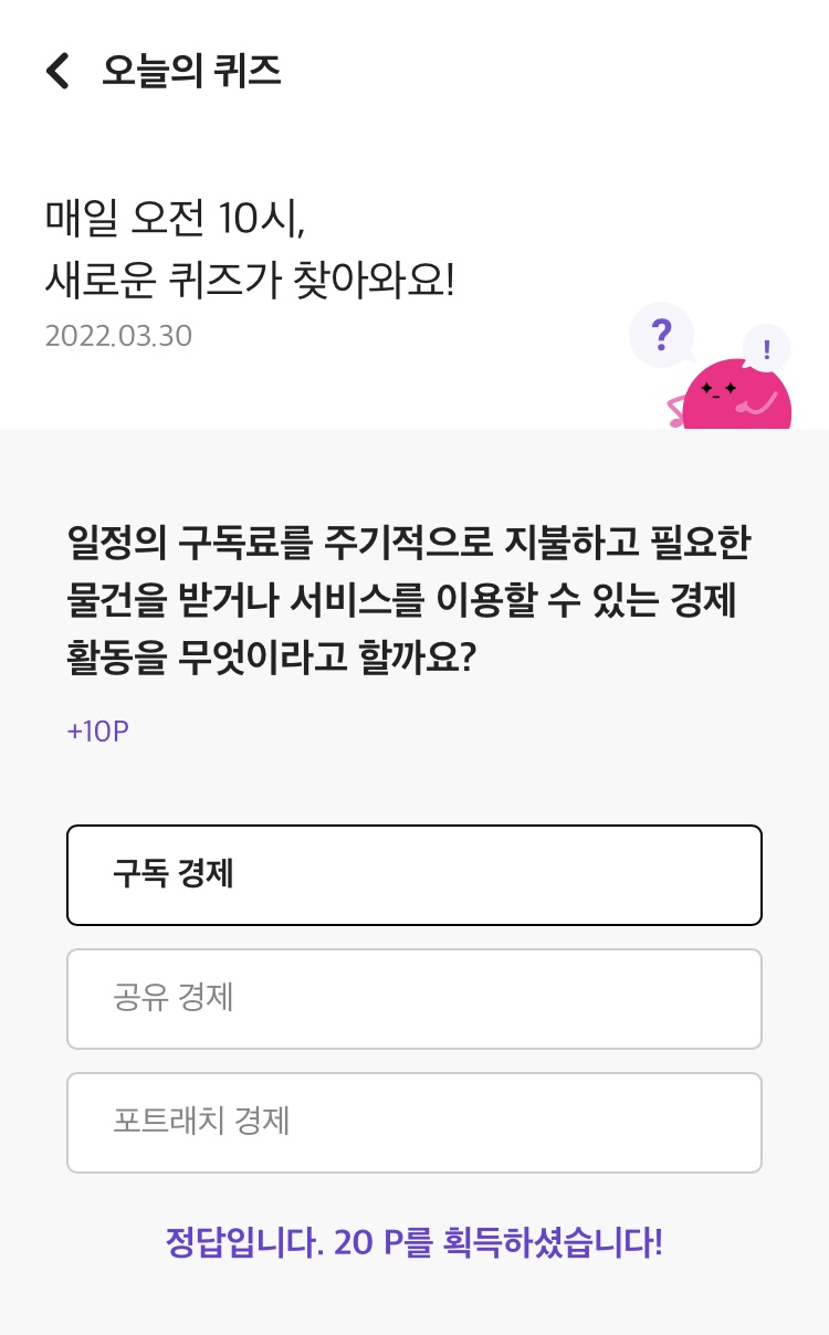 리브메이트 오늘의 퀴즈 정답 (2022년 3월 30일)