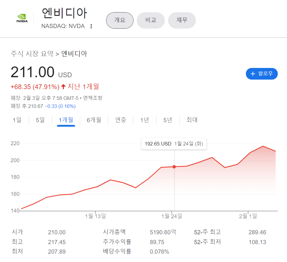 그렇지 않아도, 소액으로 투자하고 있는 엔비디아의 주가가 35% 이상 상승하고 있어 기쁘면서도,