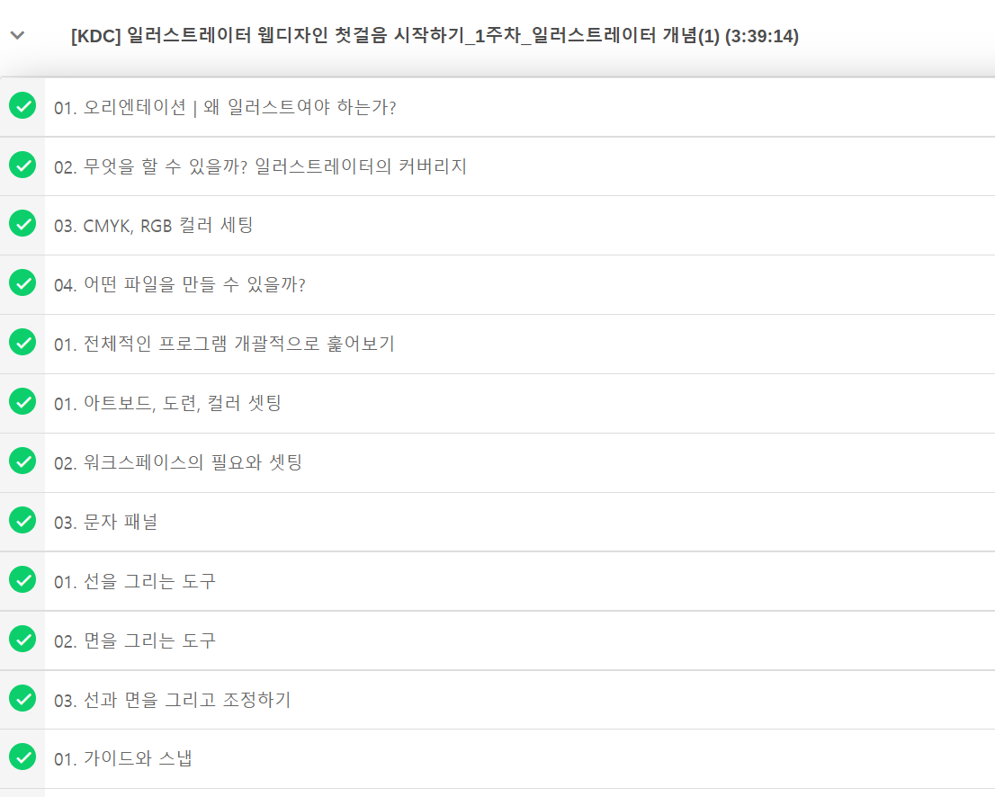 1주차 강의 목록 일부